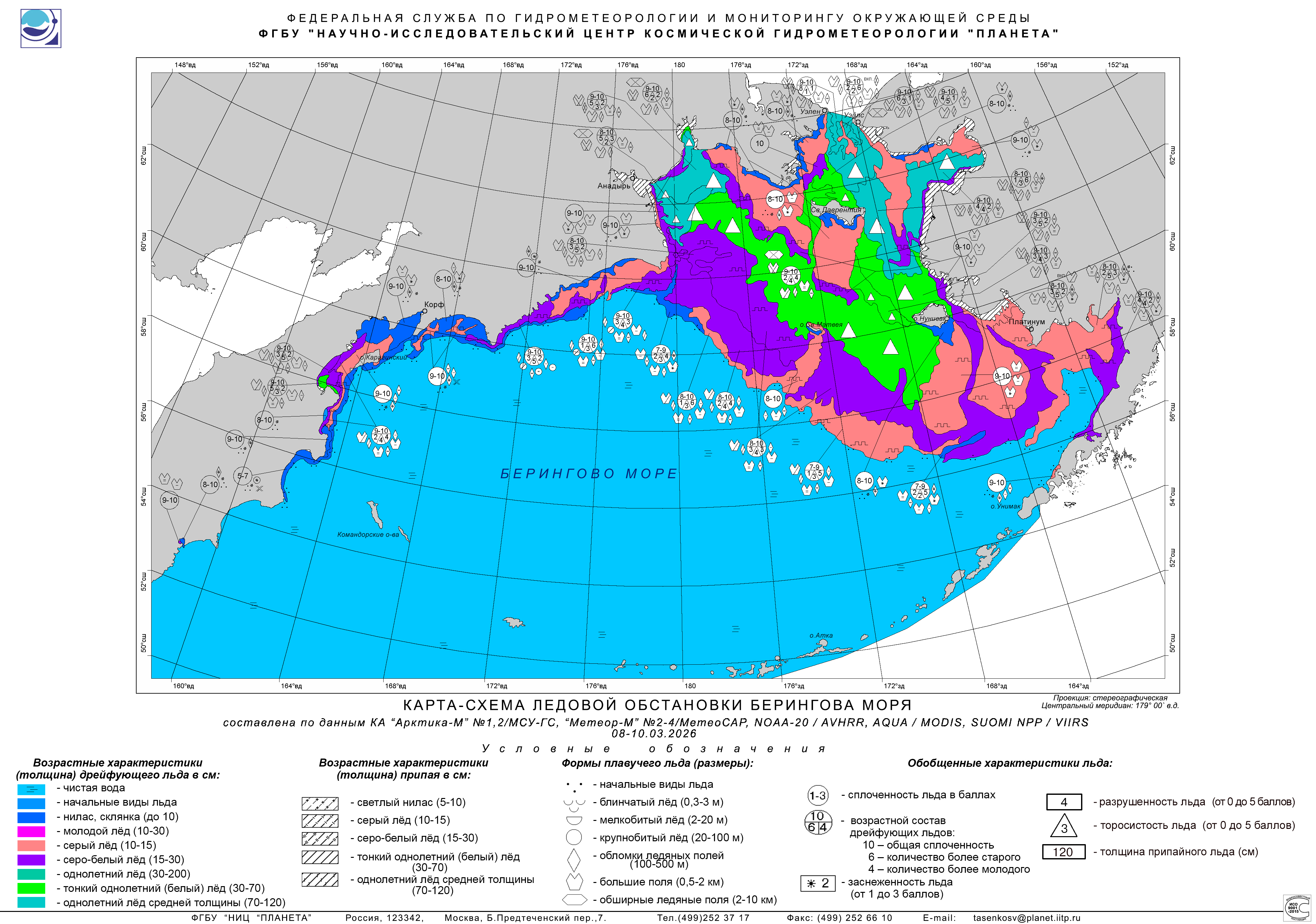 Берингово море - карта-схема ледового покрова