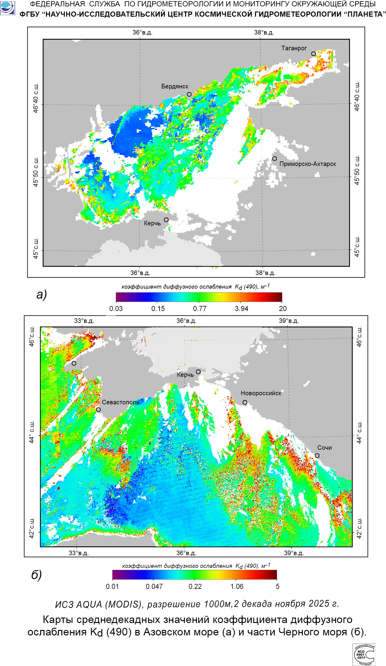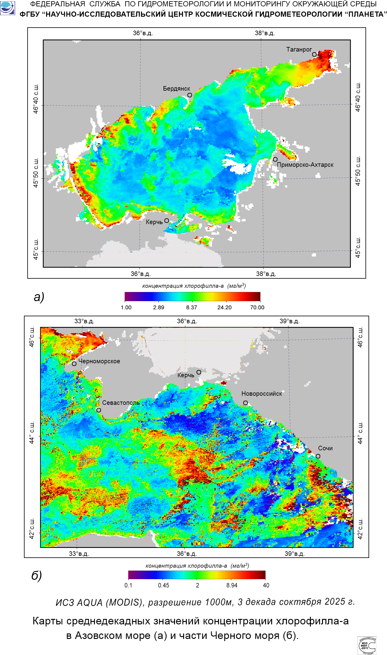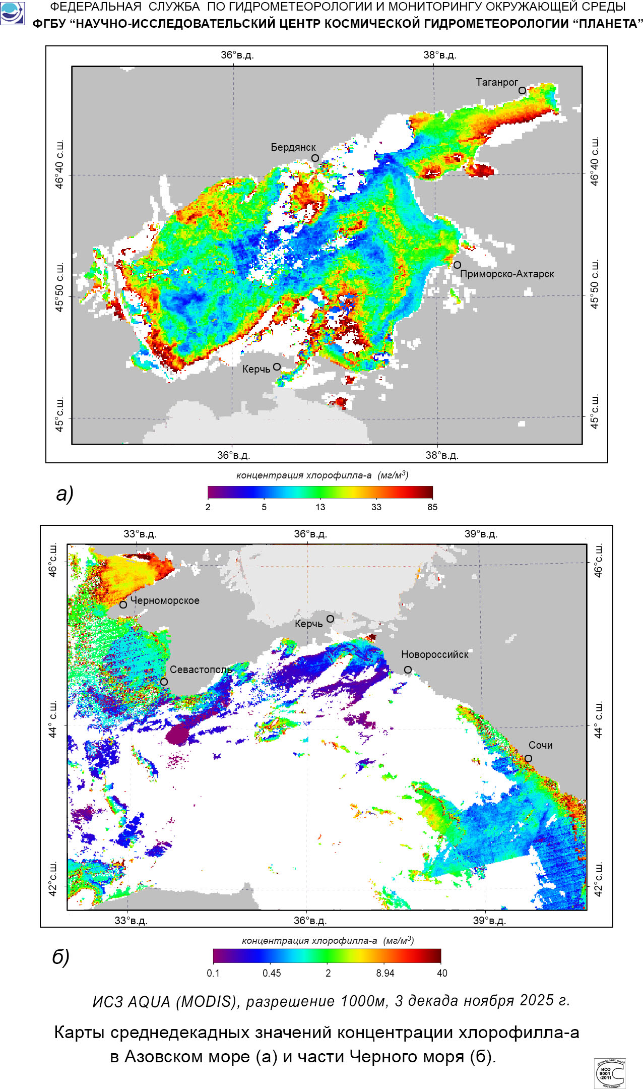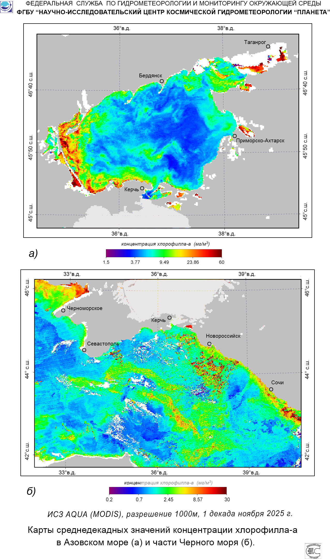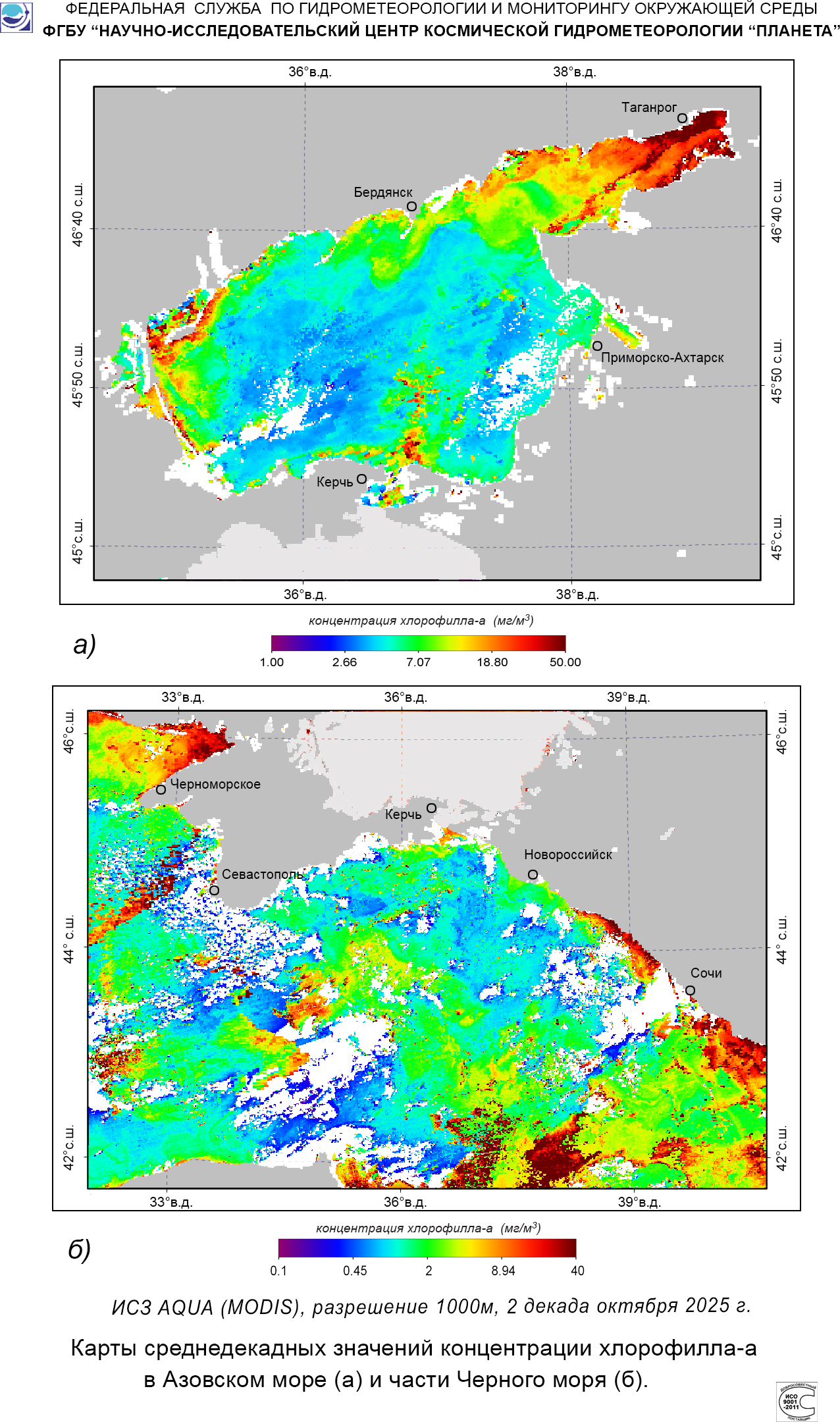 Карты концентрации хлорофилла-а.