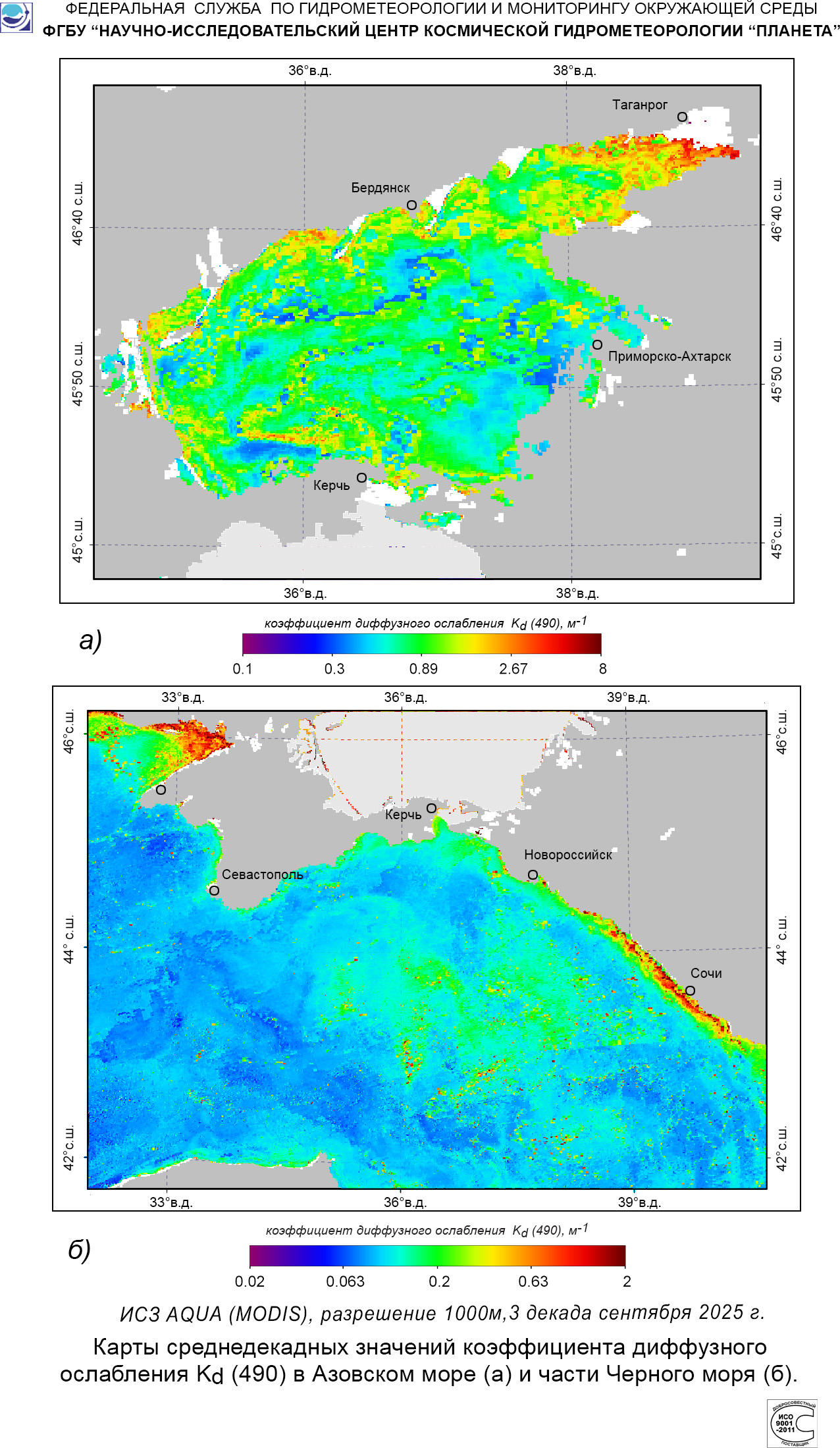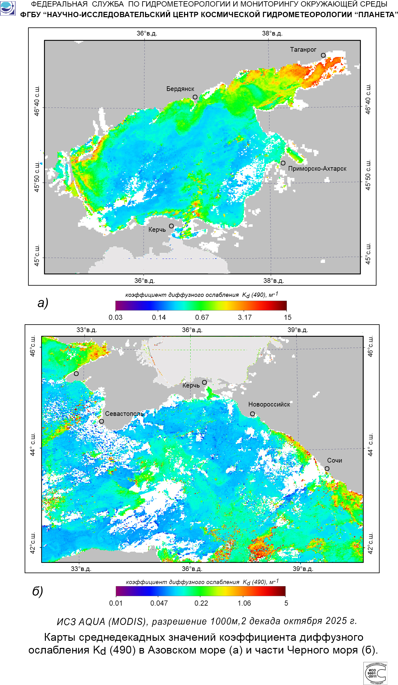 Карты значений коэффициента диффузного ослабления