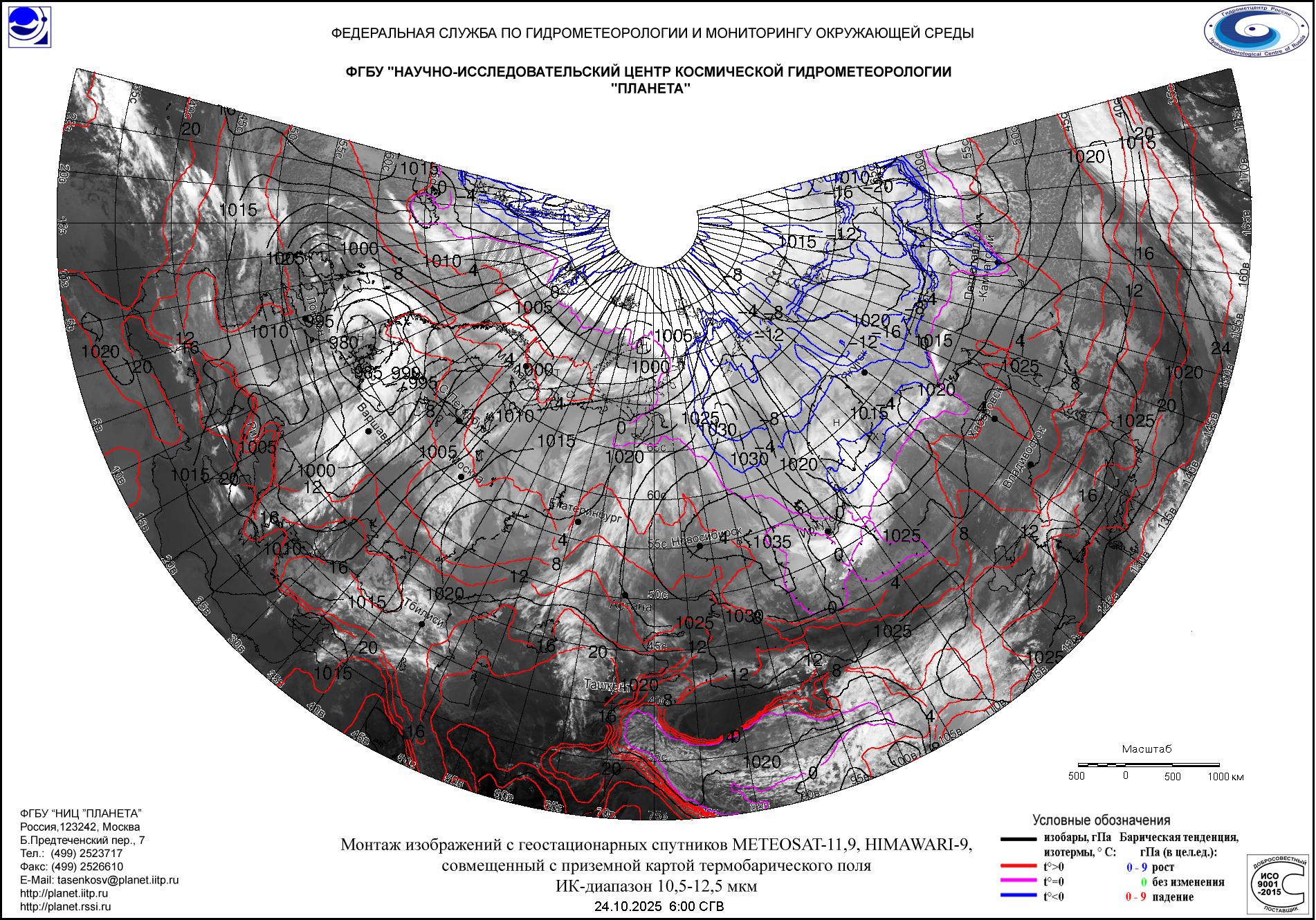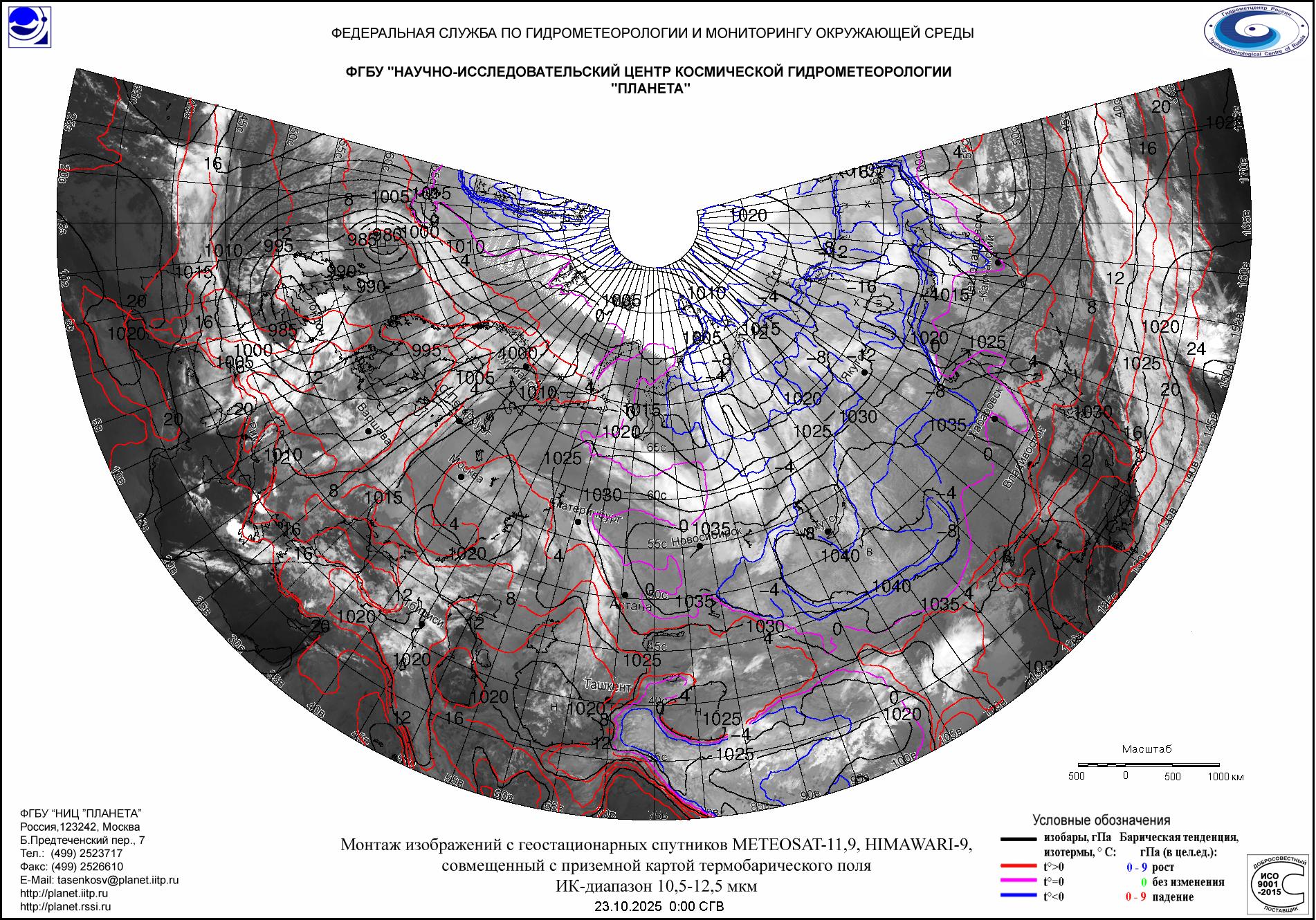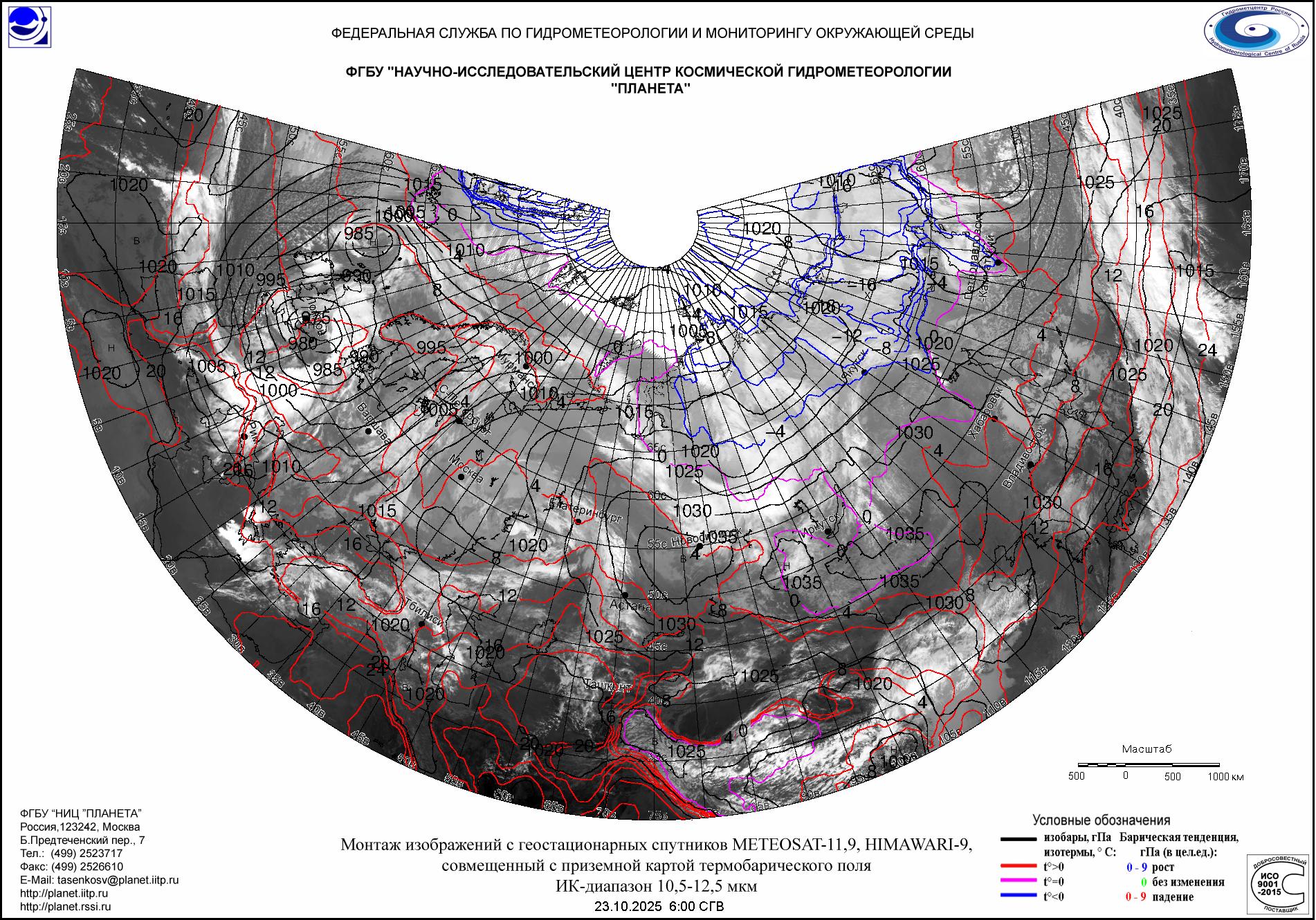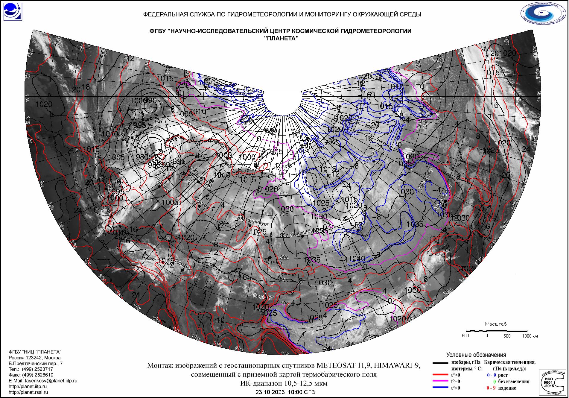 (Meteosat-9, Meteosat-11, HIMAWARI-9, приземная карта термобарического поля)