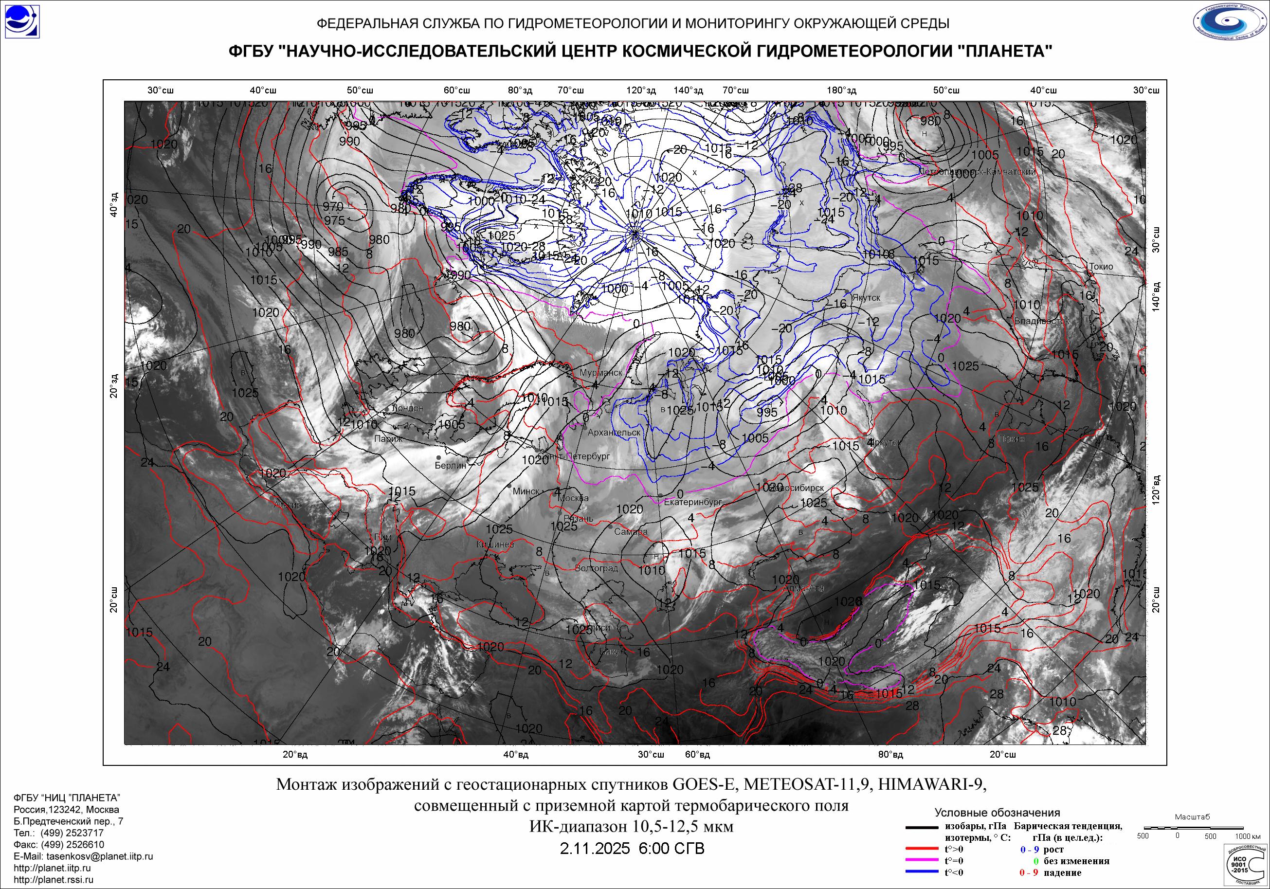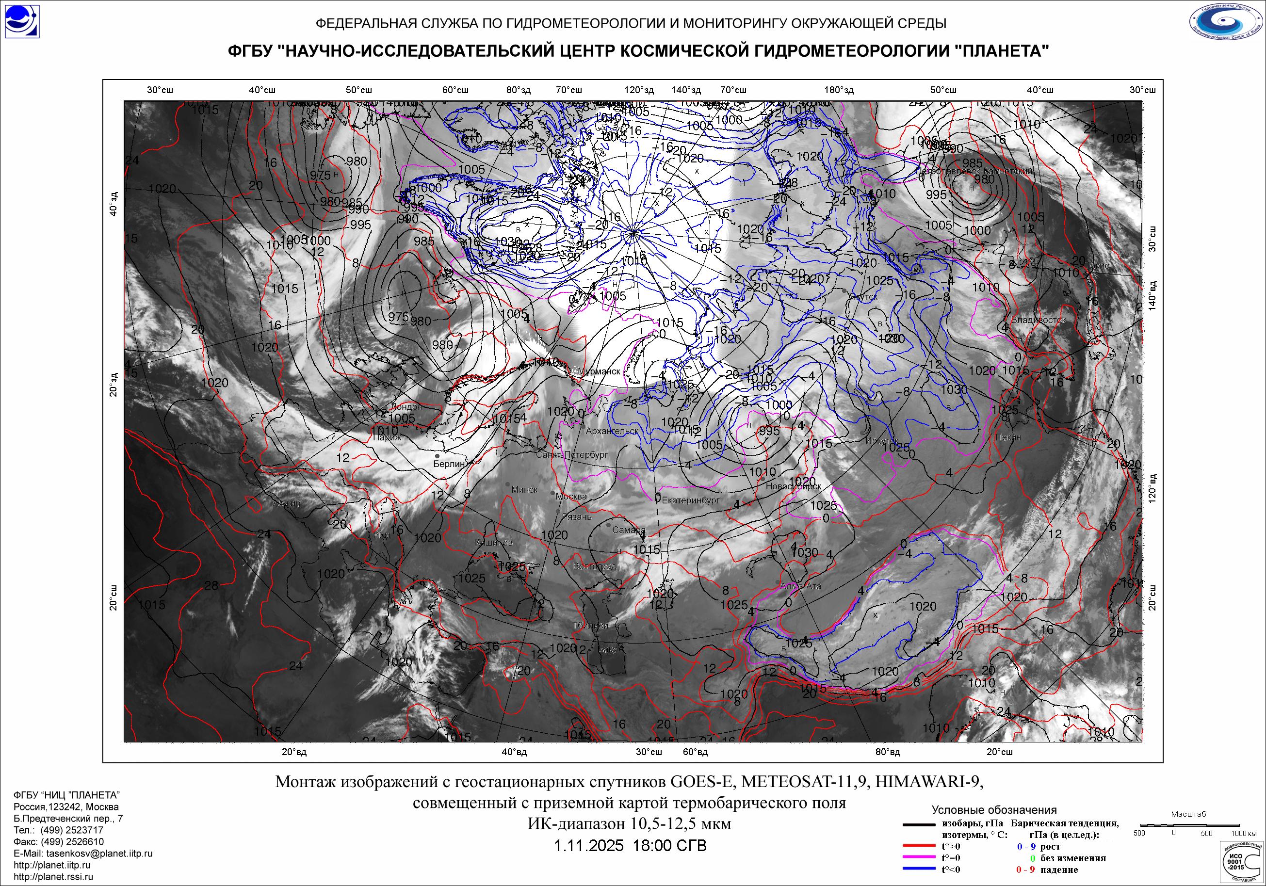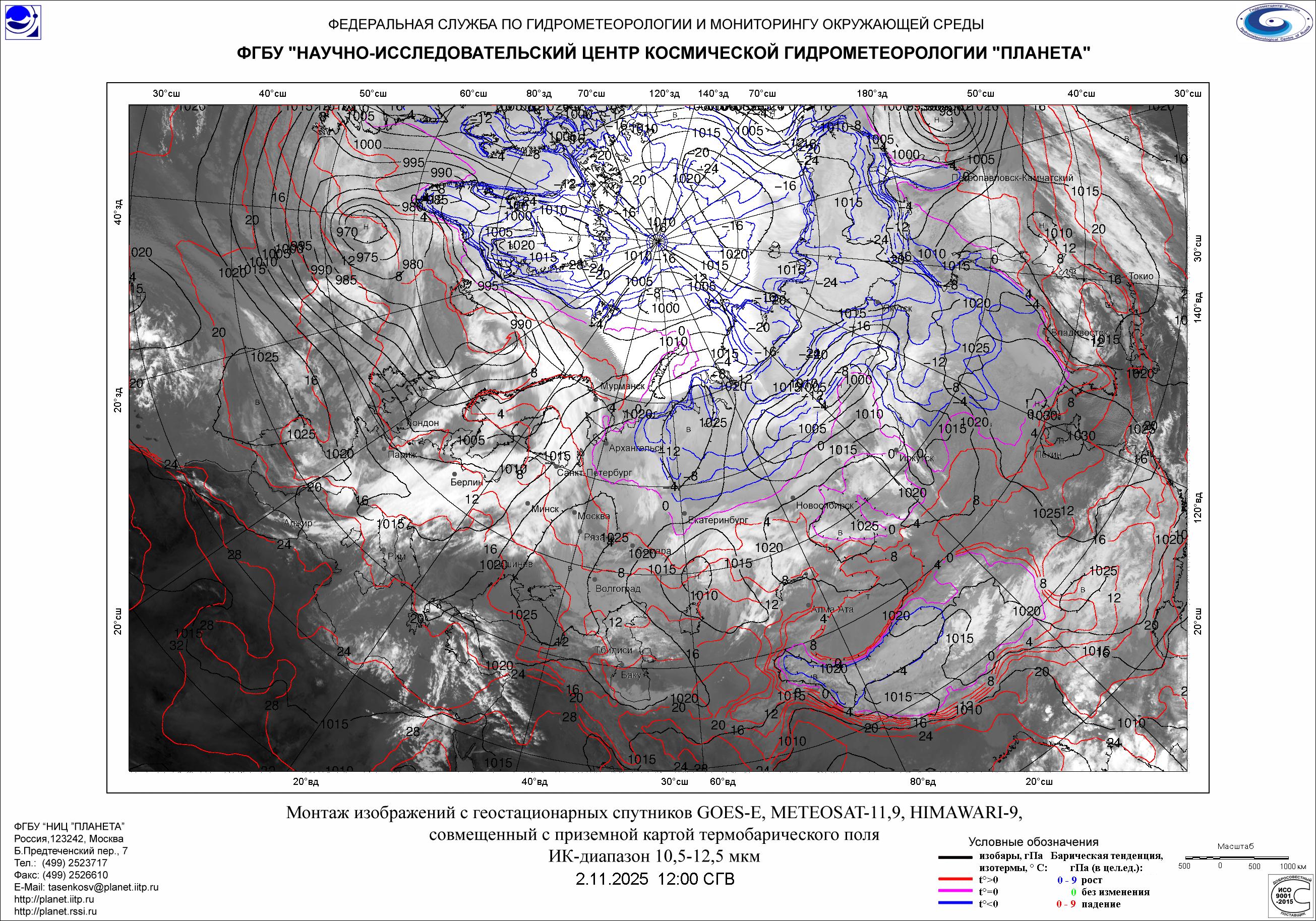 (GOES-E, Meteosat-9, Meteosat-11, HIMAWARI-9, приземная карта термобарического поля)