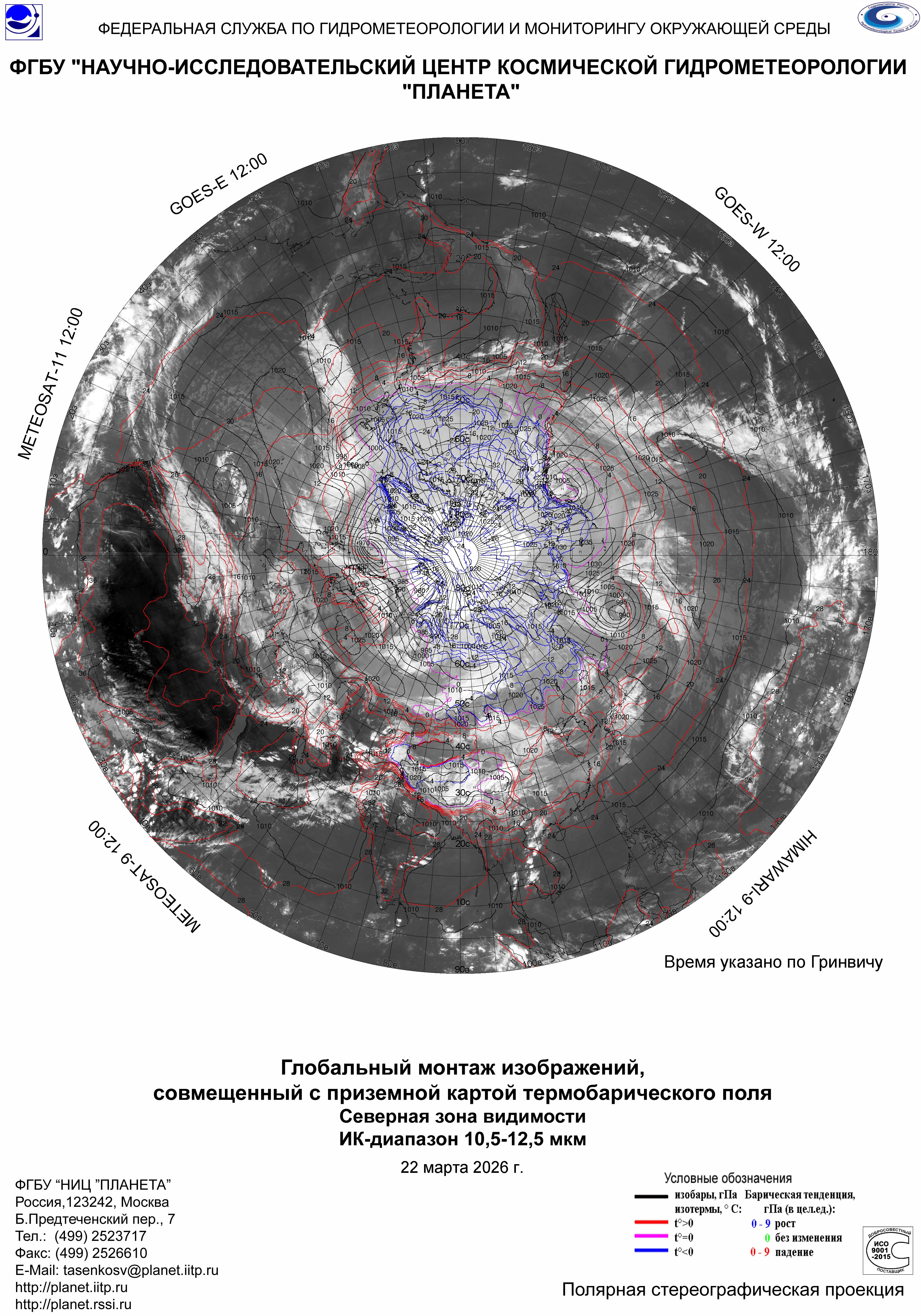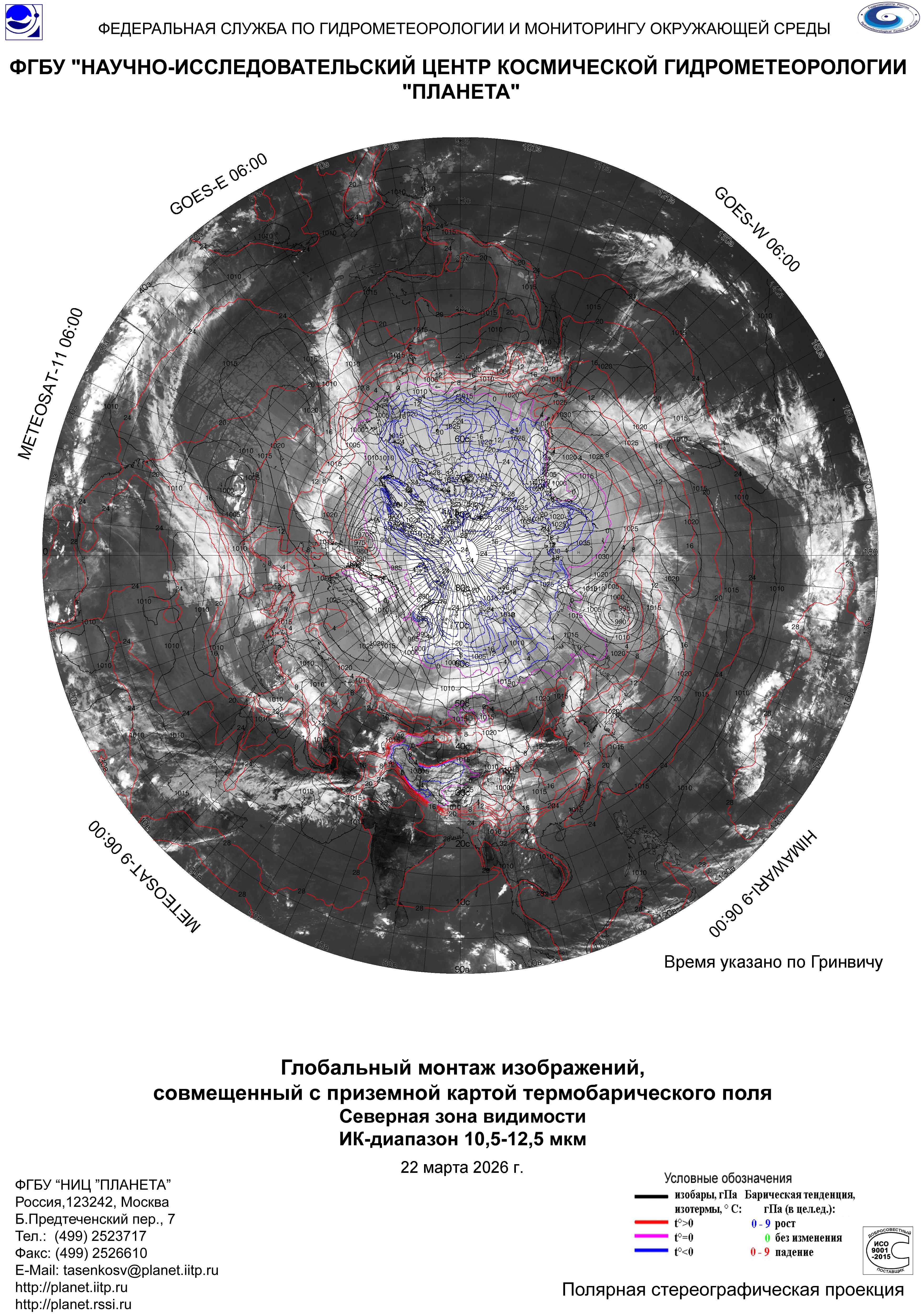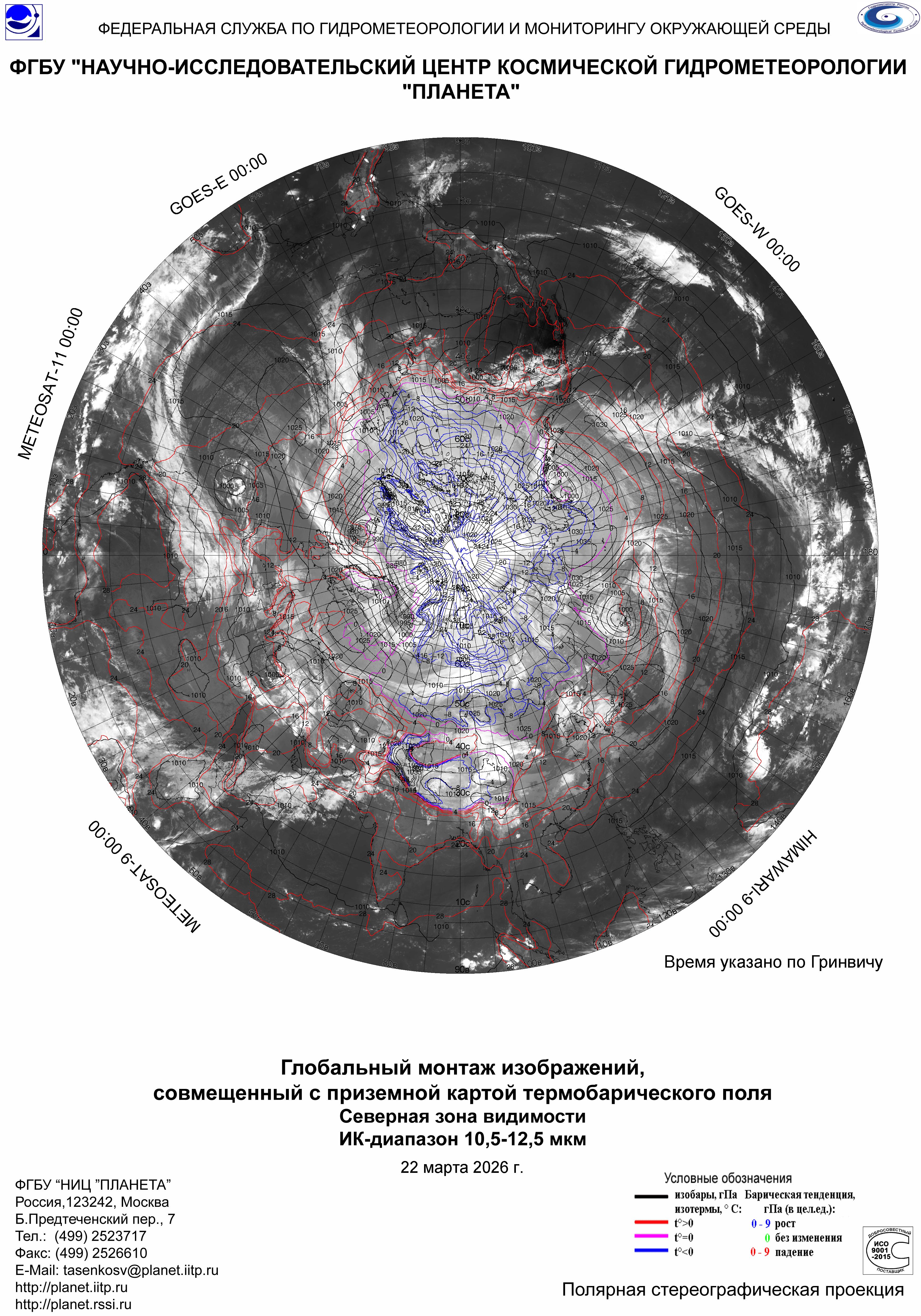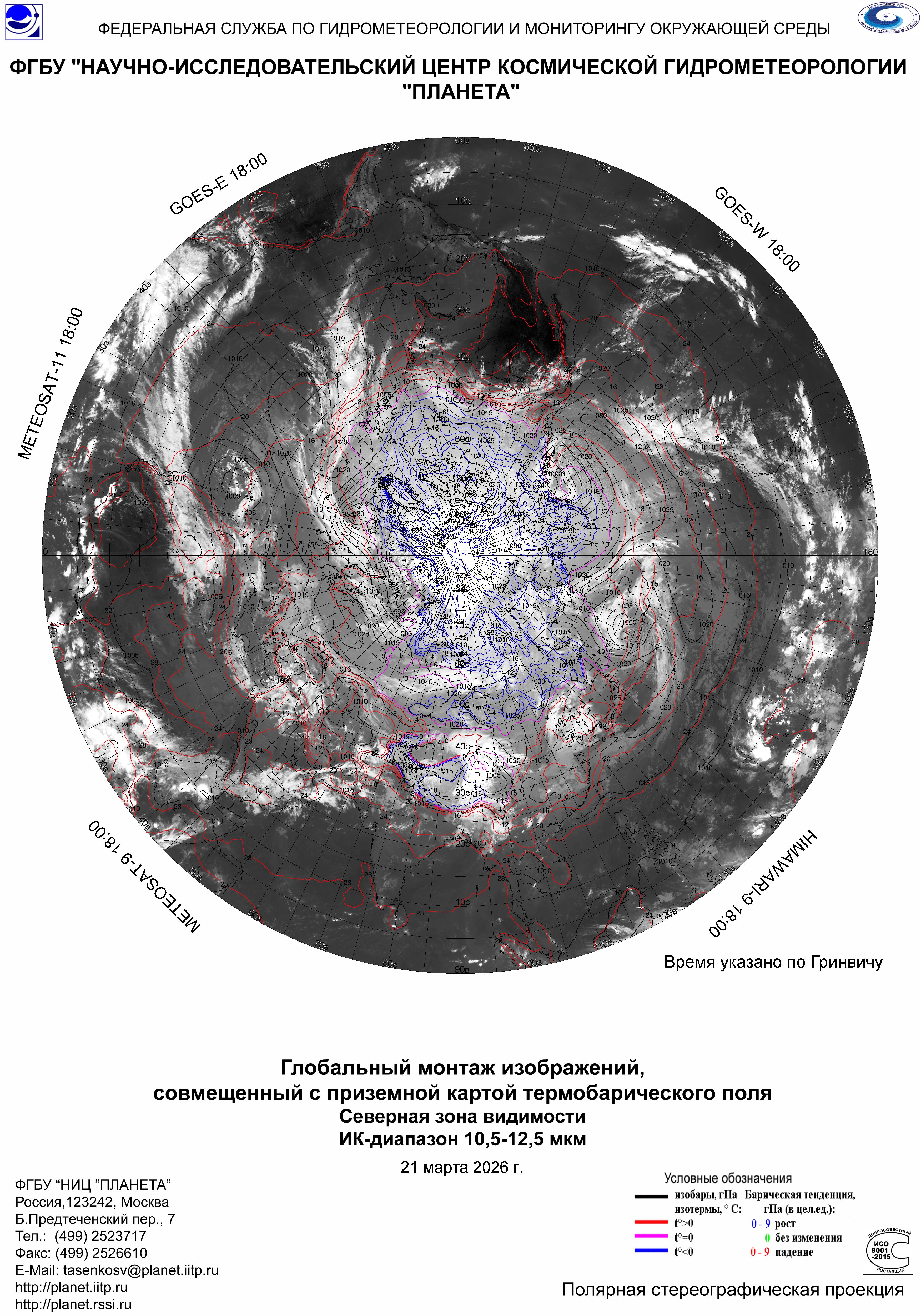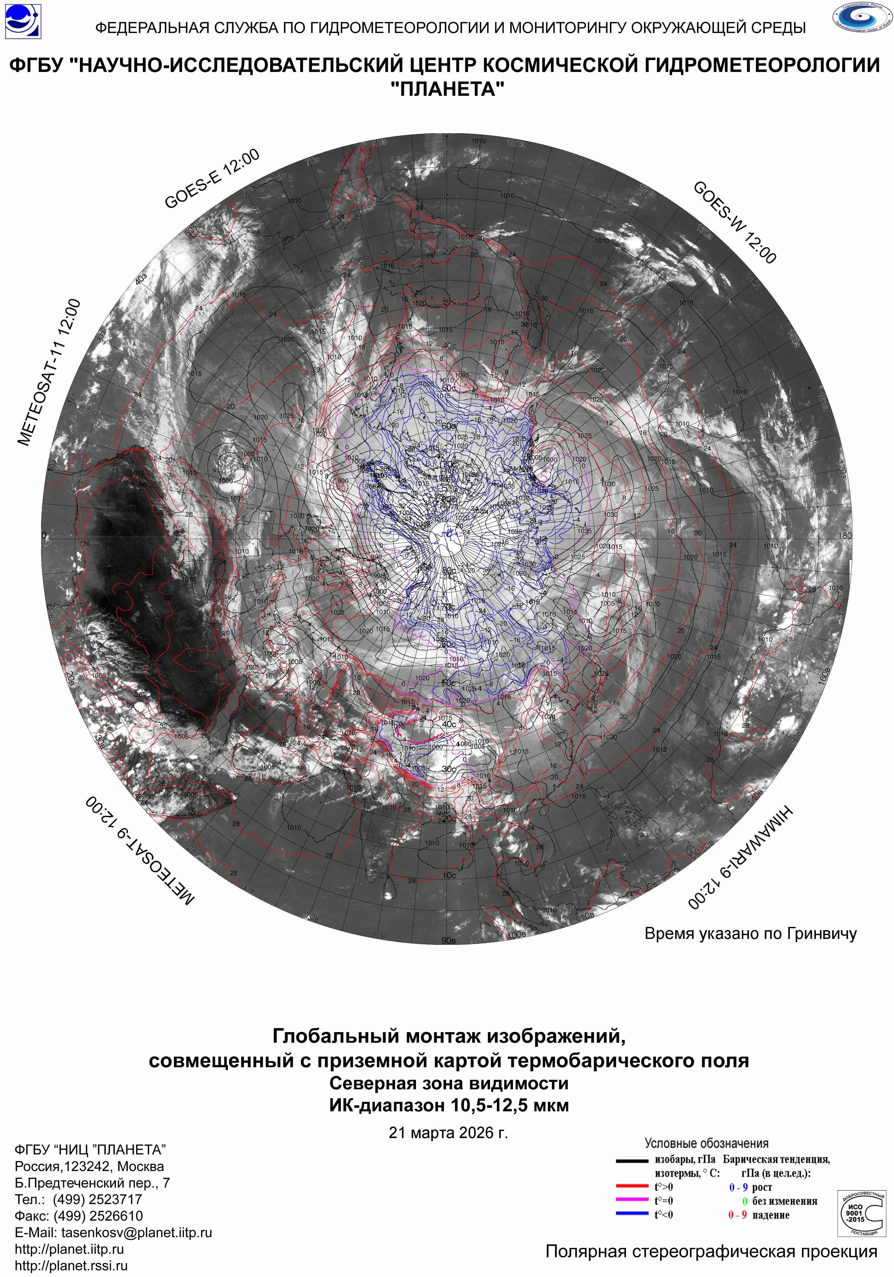 Приземная карта термобарического поля (GOES-W, GOES-E, Meteosat-9, Meteosat-11, HIMAWARI-9)