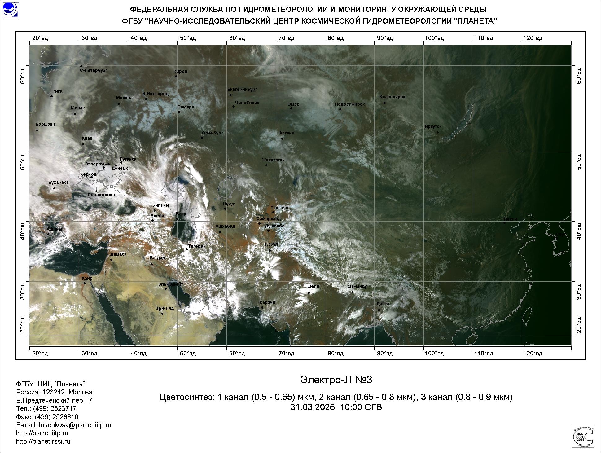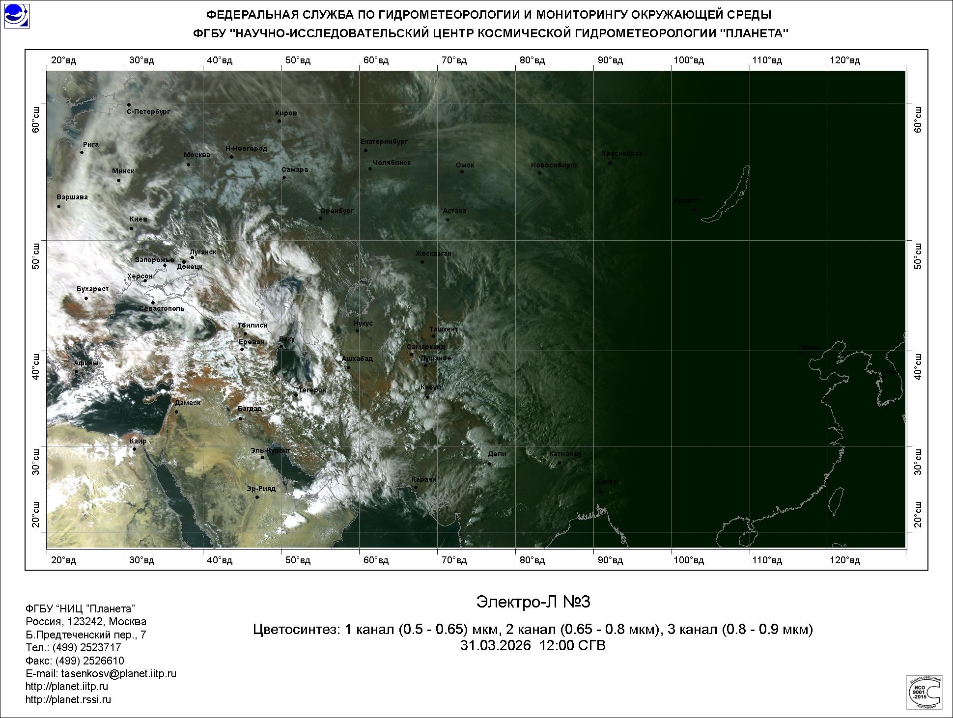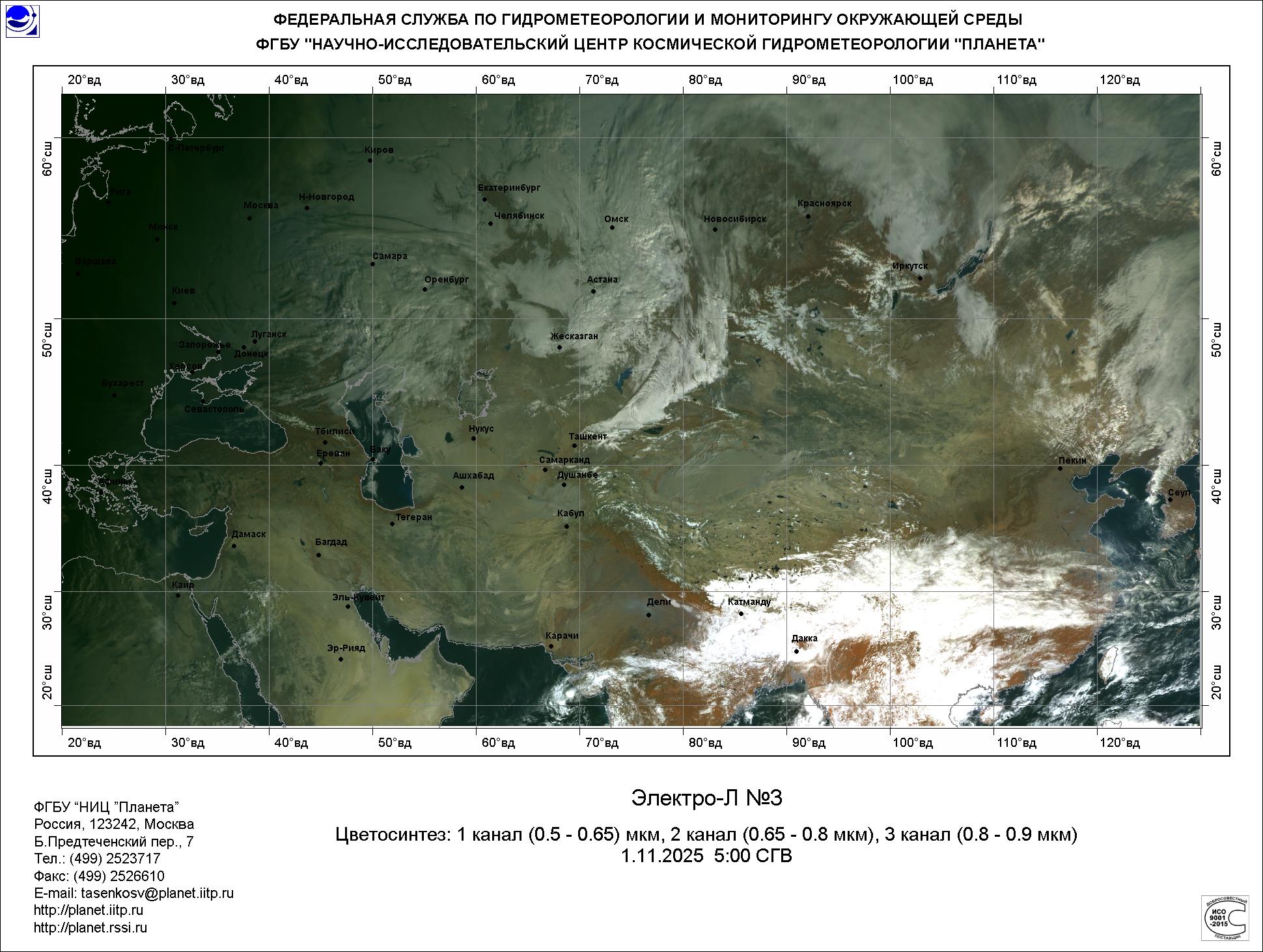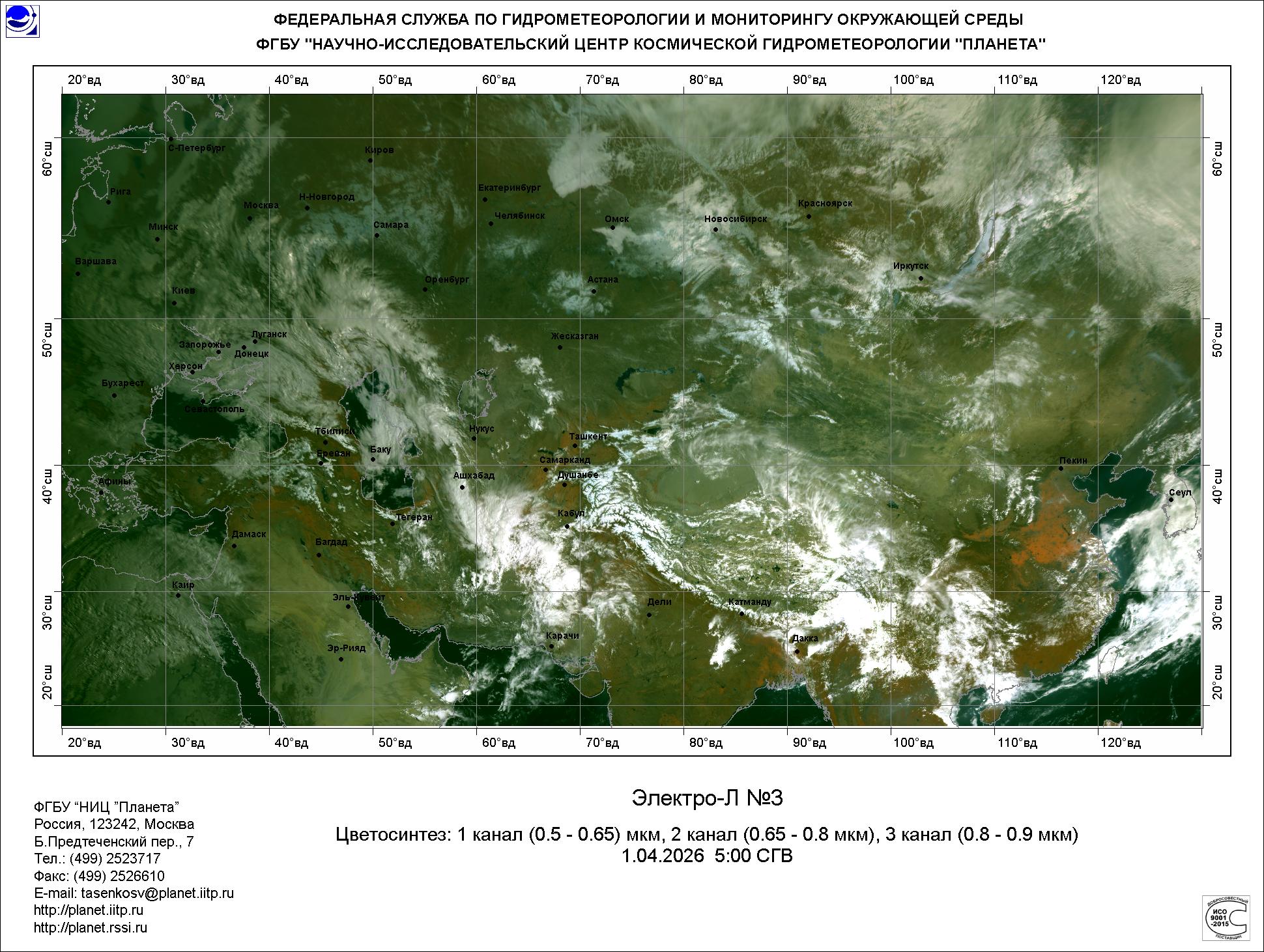 Цветосинтезированные изображения по данным КА Электро-Л №3