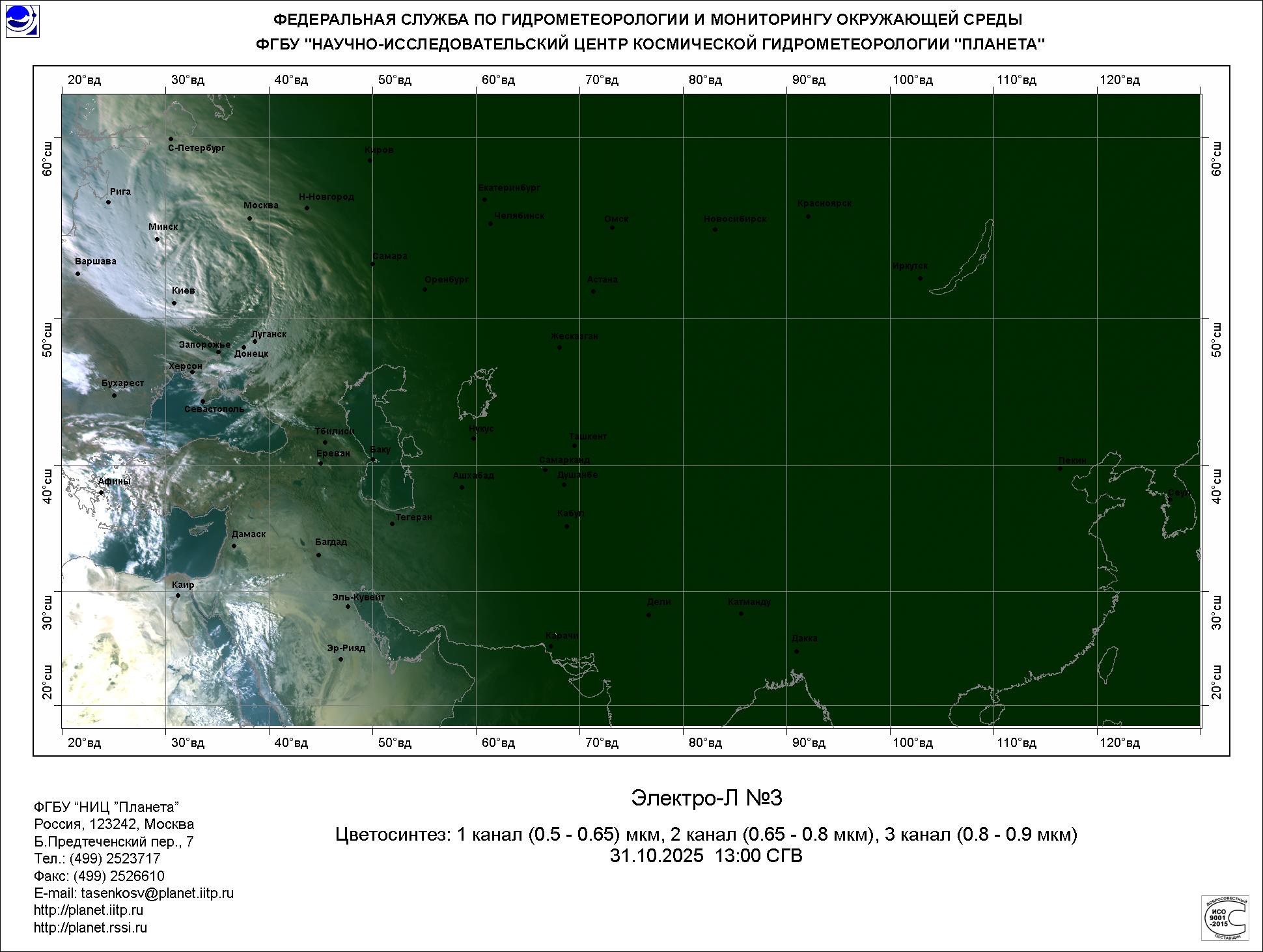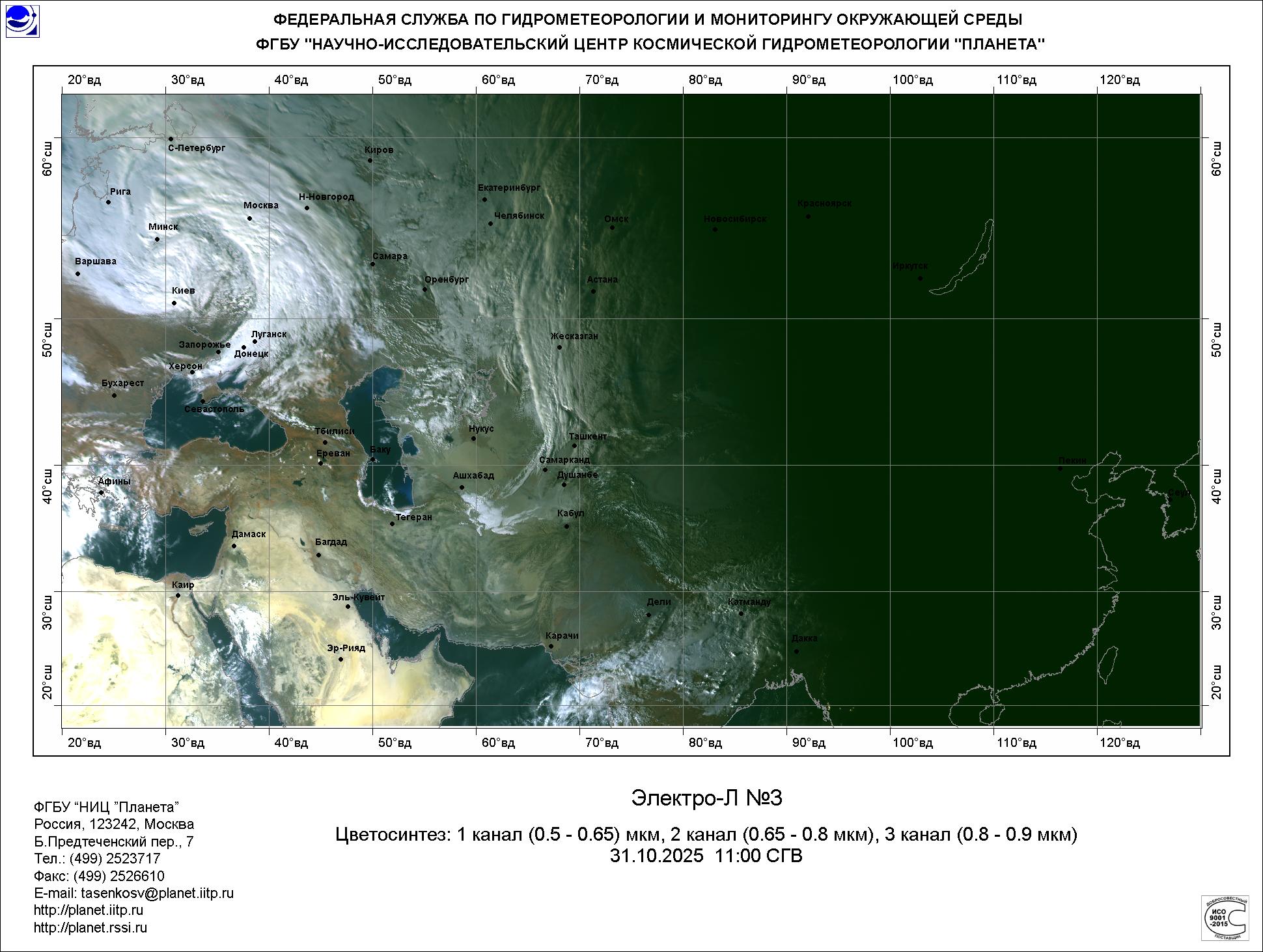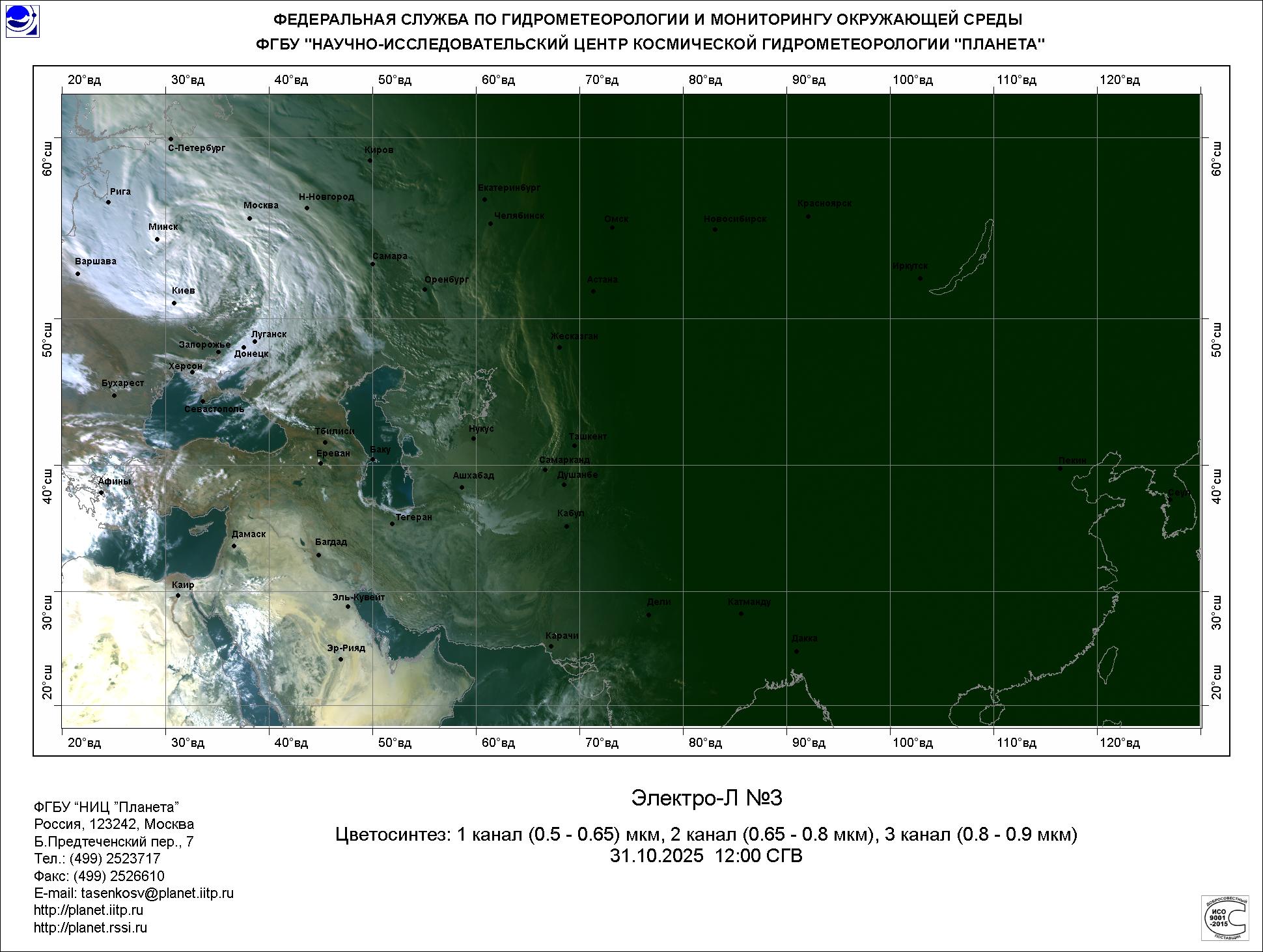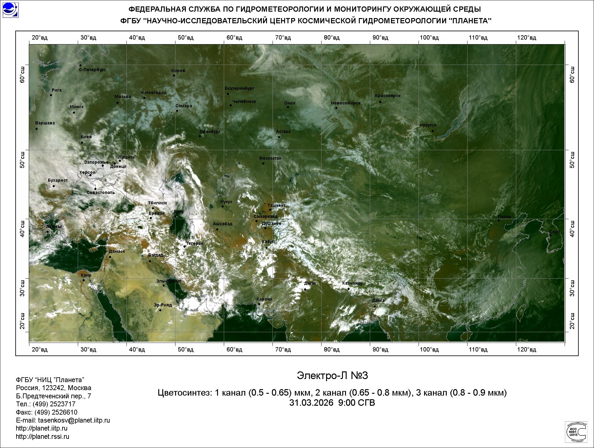 Цветосинтезированные изображения по данным КА Электро-Л №3