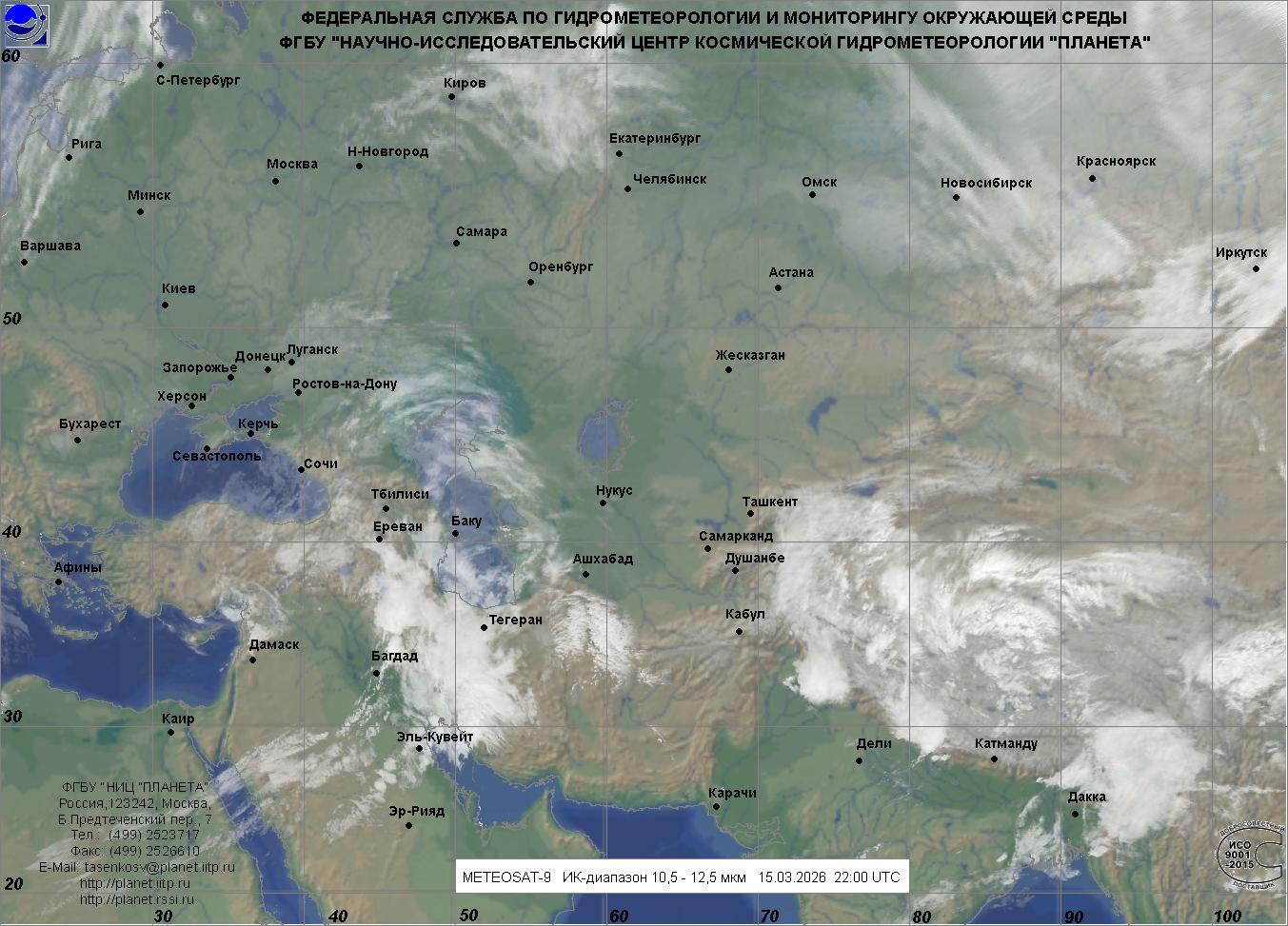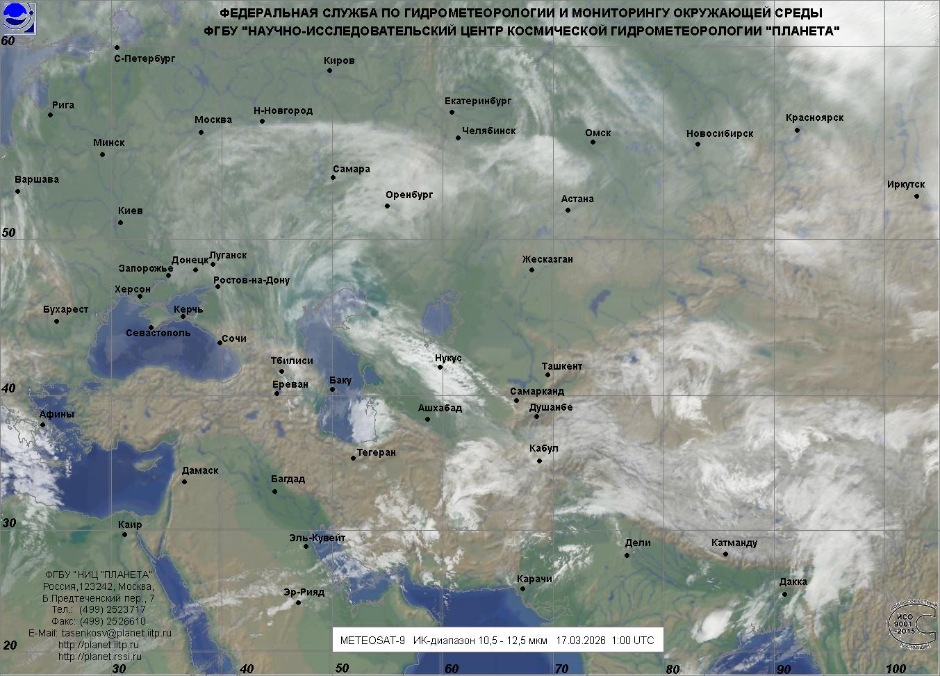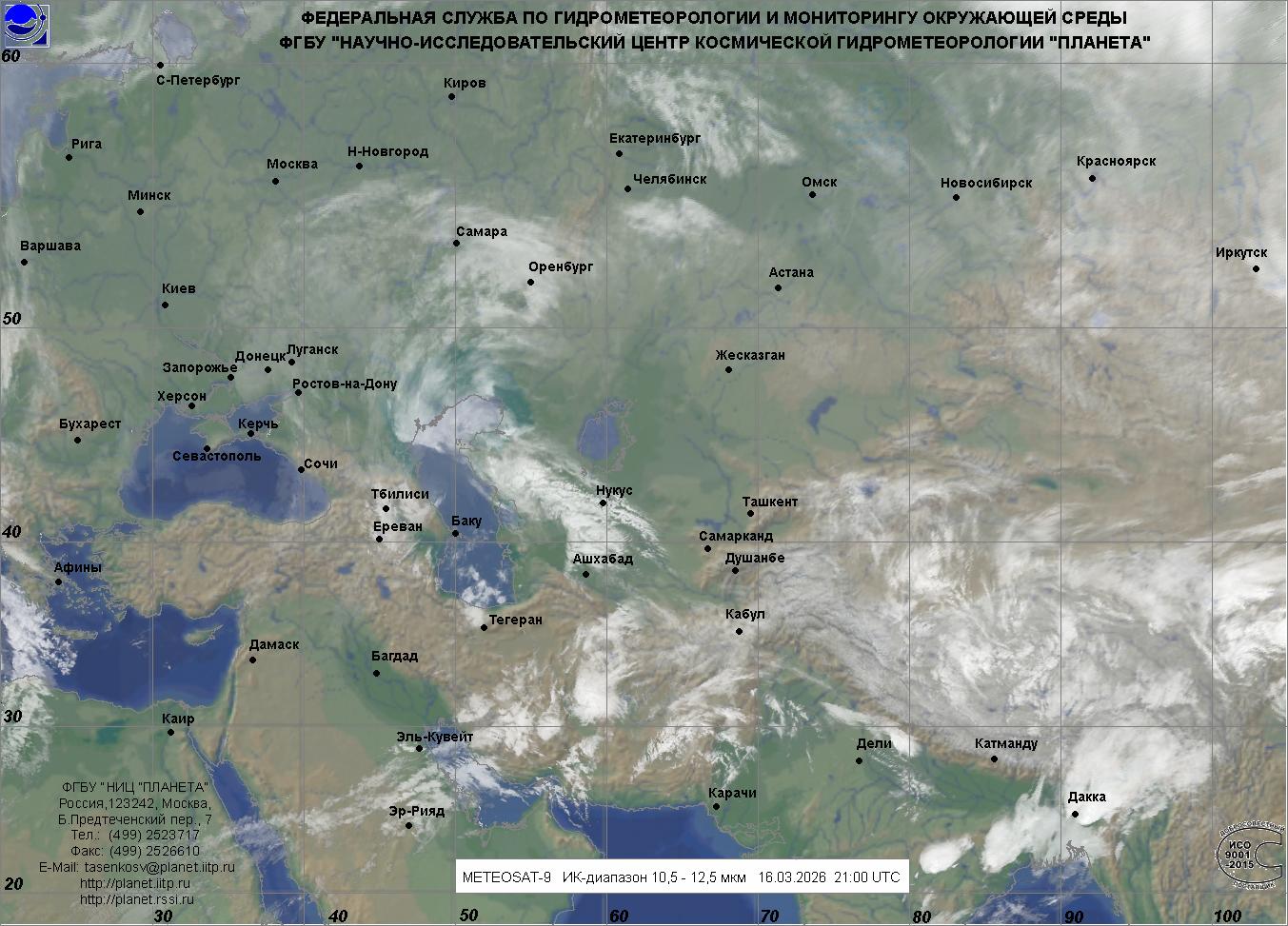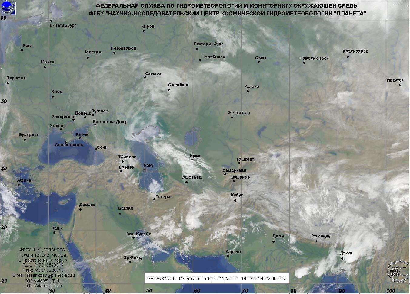 Обзорные наблюдения, облачность - Евразия, Южный регион